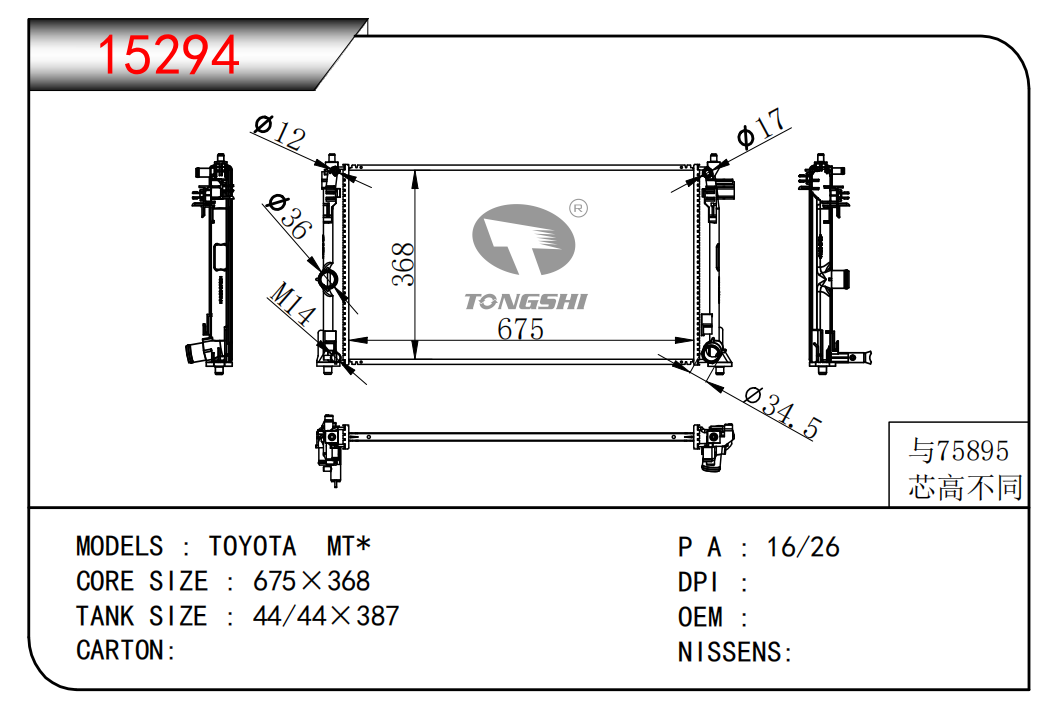 适用于FREIGHTLINER CASCADIA 125/ 113 L6 12.8L 12-13 AT散热器