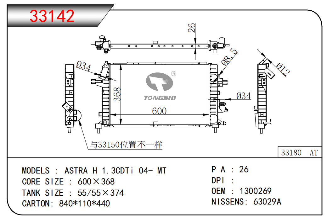 适用于沃尔沃V40 1.9TD D4192T 95- MT散热器
