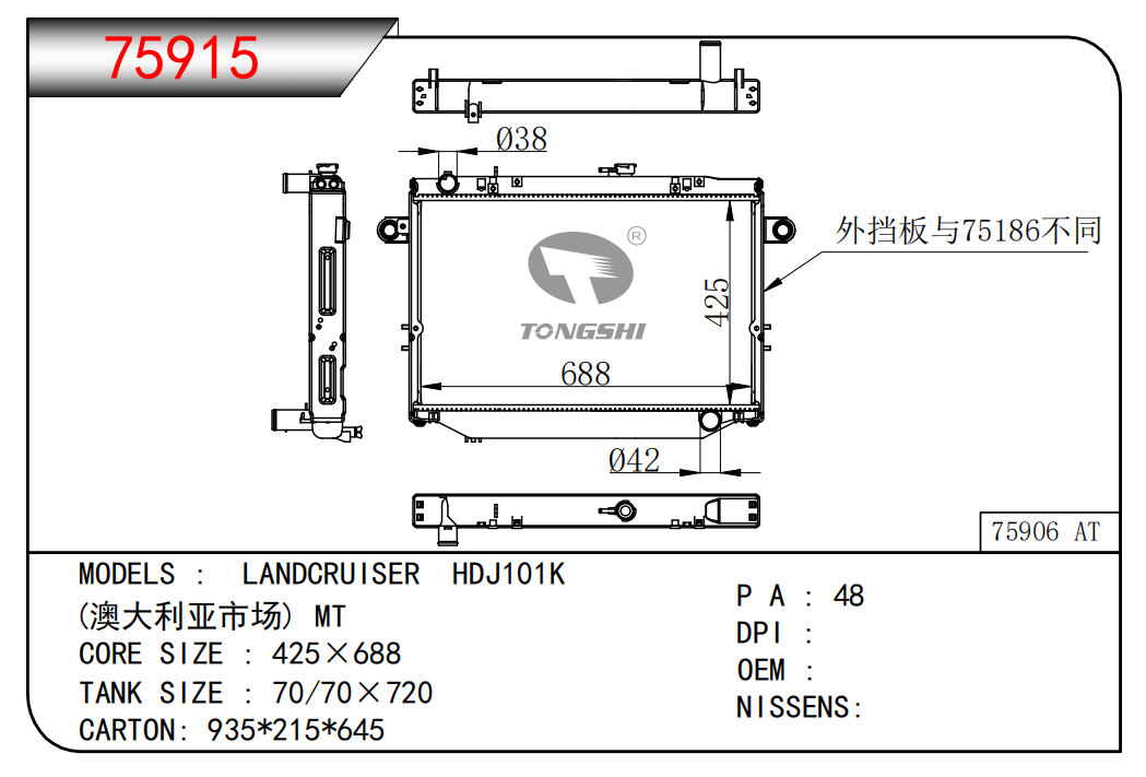 适用于沃尔沃V40 1.9TD D4192T 95- MT散热器