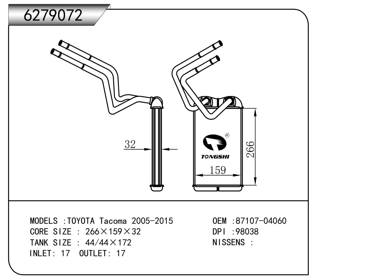 适用于沃尔沃V40 1.9TD D4192T 95- MT散热器