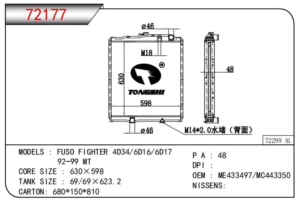适用于FREIGHTLINER CASCADIA 125/ 113 L6 12.8L 12-13 AT散热器