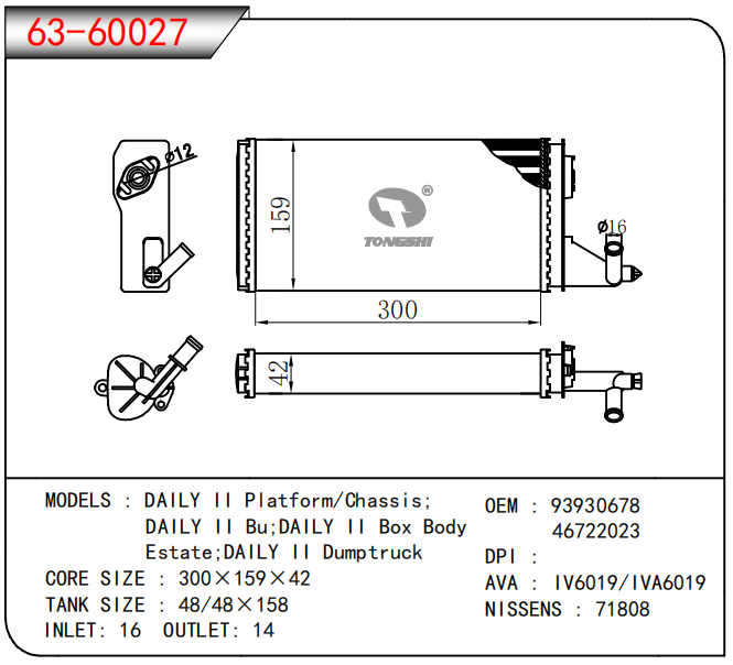 适用于 DAILY II Platform/Chassis; DAILY II Bu;DAILY II Box Body Estate;DAILY II Dumptruck 暖风