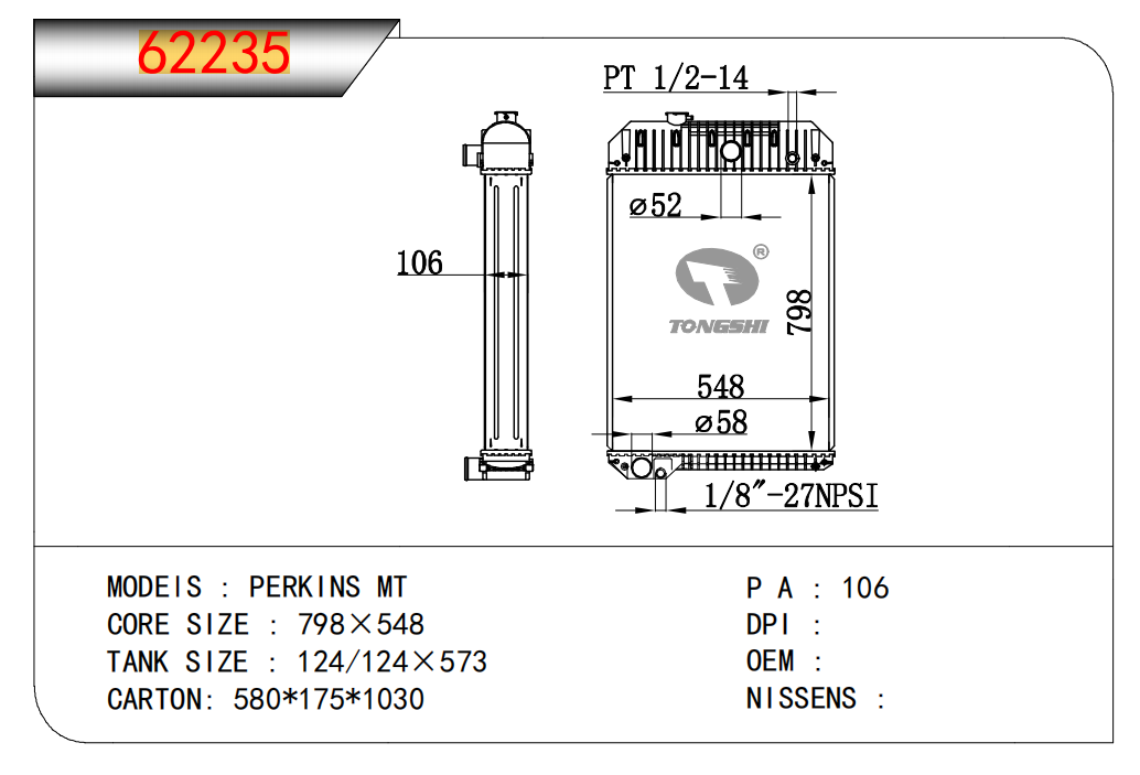 适用于沃尔沃V40 1.9TD D4192T 95- MT散热器