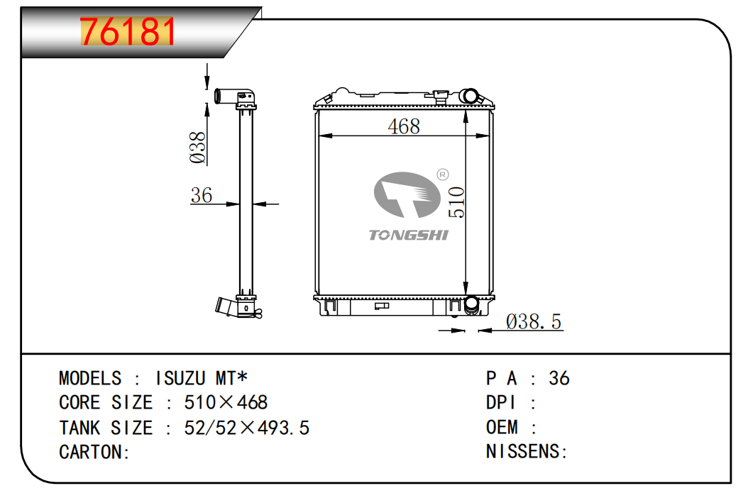适用于沃尔沃V40 1.9TD D4192T 95- MT散热器