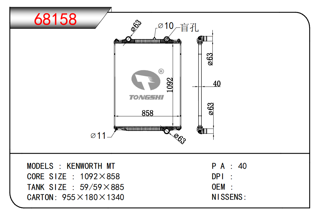适用于沃尔沃V40 1.9TD D4192T 95- MT散热器