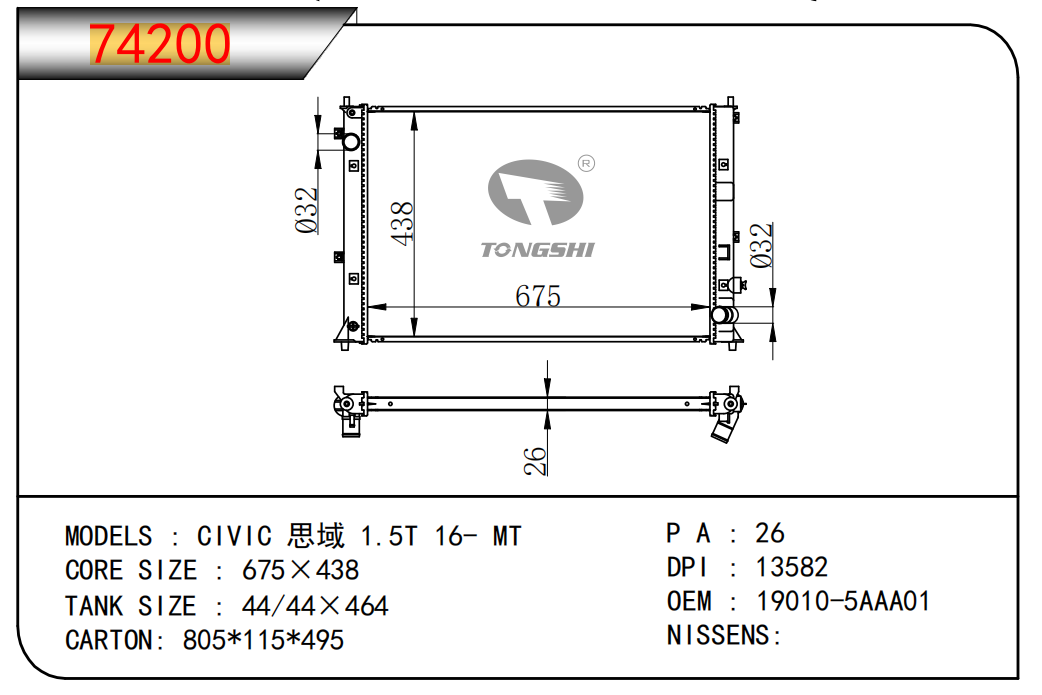 适用于奇瑞瑞虎(新款) MT散热器