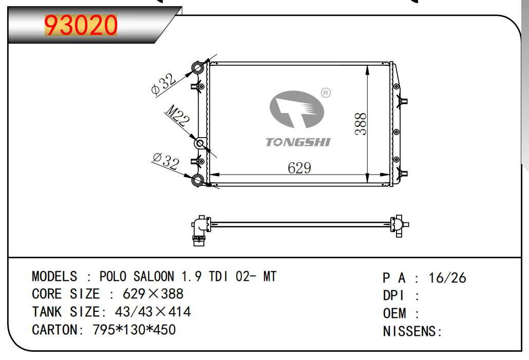 适用于沃尔沃V40 1.9TD D4192T 95- MT散热器