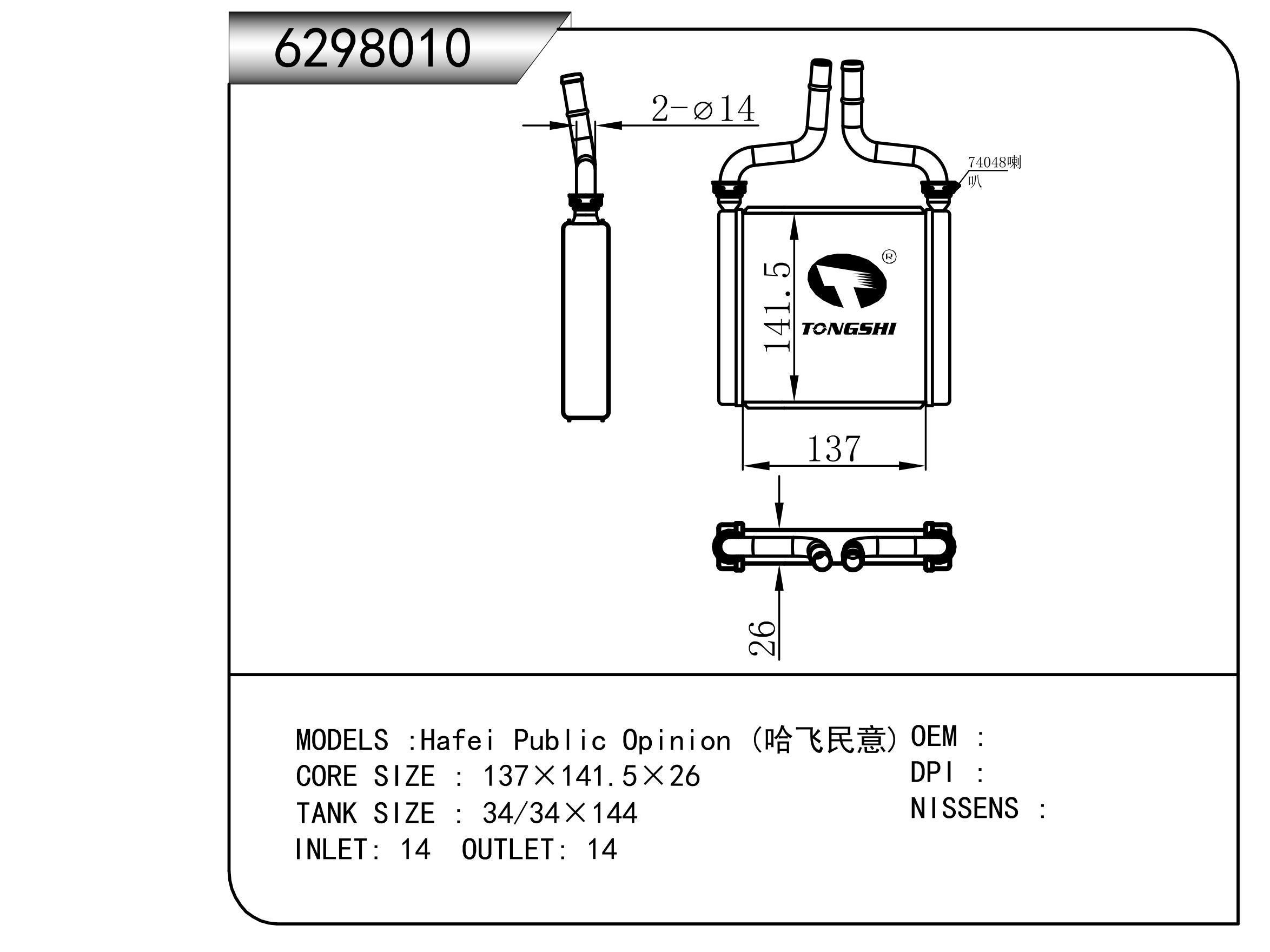 适用于沃尔沃V40 1.9TD D4192T 95- MT散热器