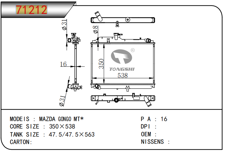 适用于沃尔沃V40 1.9TD D4192T 95- MT散热器
