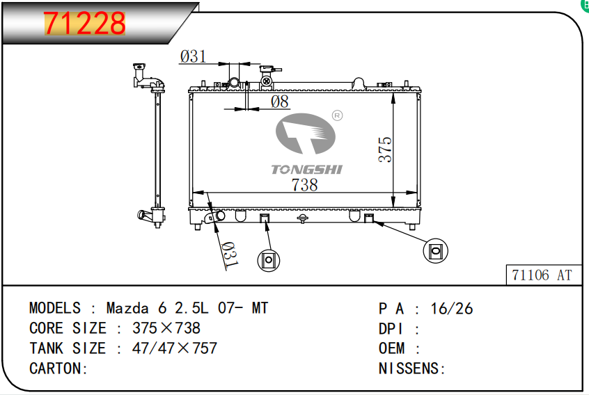 适用于沃尔沃V40 1.9TD D4192T 95- MT散热器