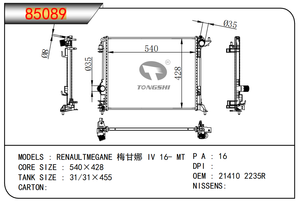 适用于宝马E30 320 i 82-93 AT散热器