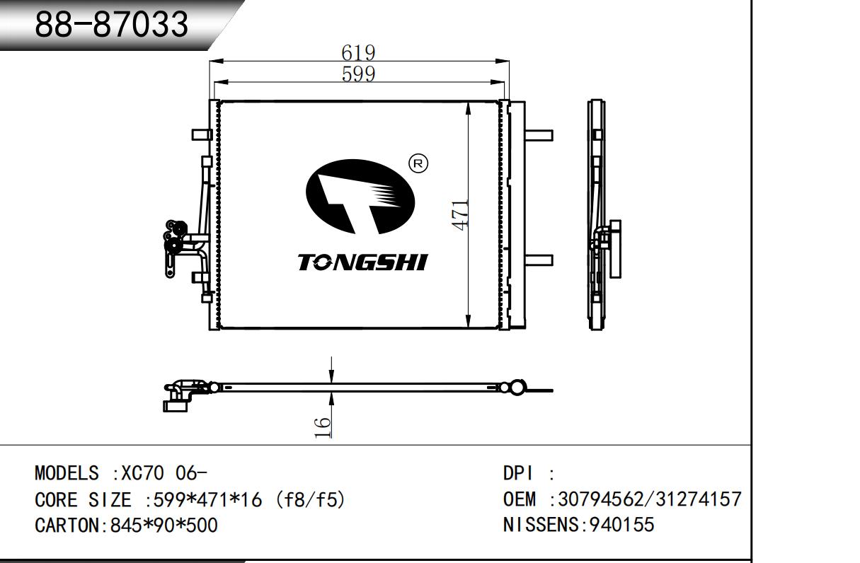 适用于沃尔沃V40 1.9TD D4192T 95- MT散热器