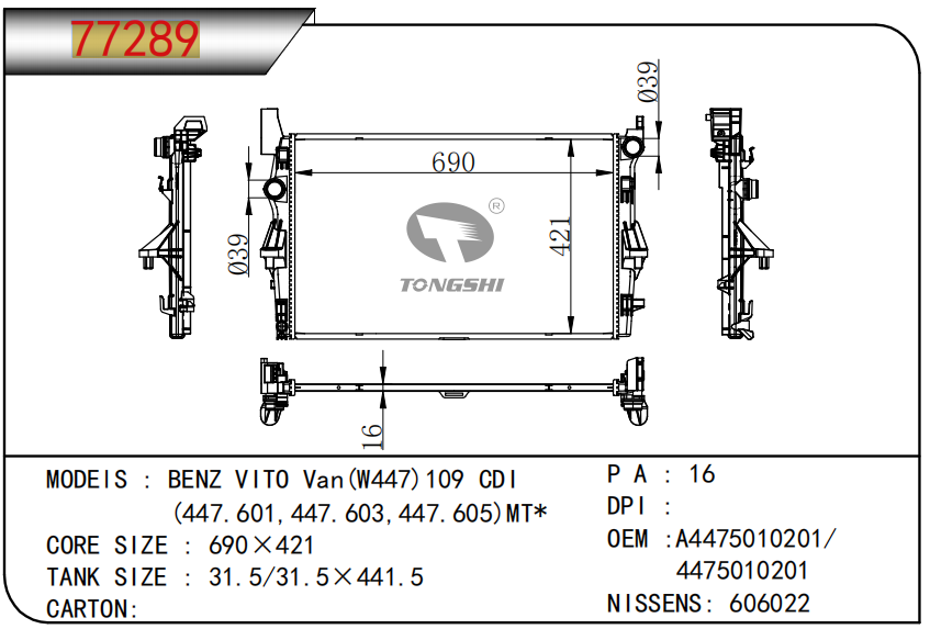 适用于沃尔沃V40 1.9TD D4192T 95- MT散热器