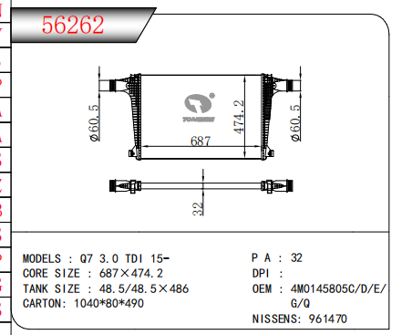 适用于沃尔沃V40 1.9TD D4192T 95- MT散热器