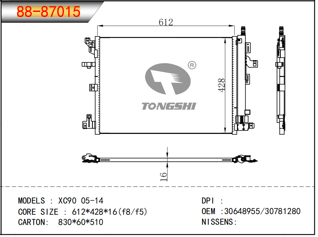 适用于沃尔沃V40 1.9TD D4192T 95- MT散热器