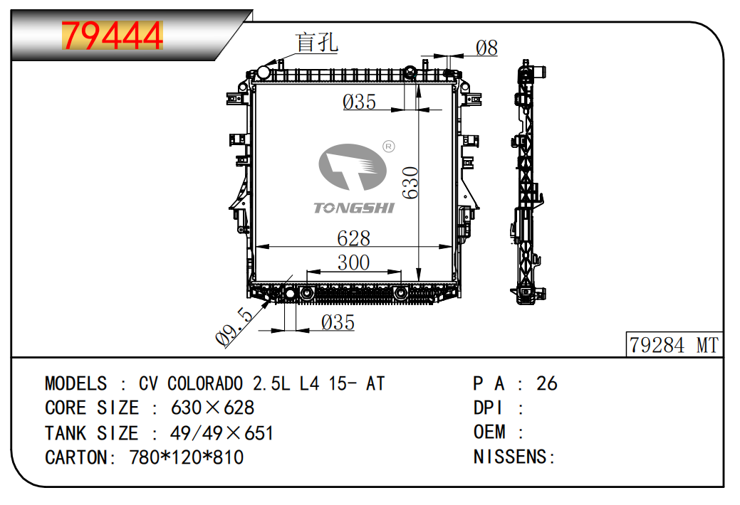 适用于沃尔沃V40 1.9TD D4192T 95- MT散热器