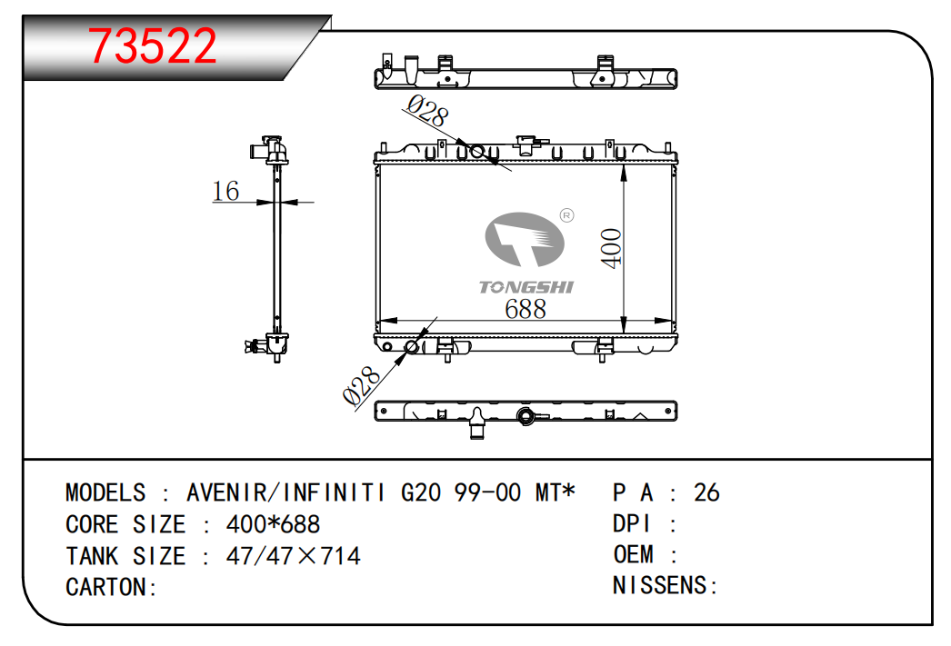 适用于沃尔沃V40 1.9TD D4192T 95- MT散热器