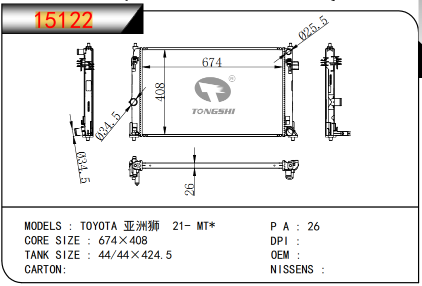 适用于FREIGHTLINER CASCADIA 125/ 113 L6 12.8L 12-13 AT散热器