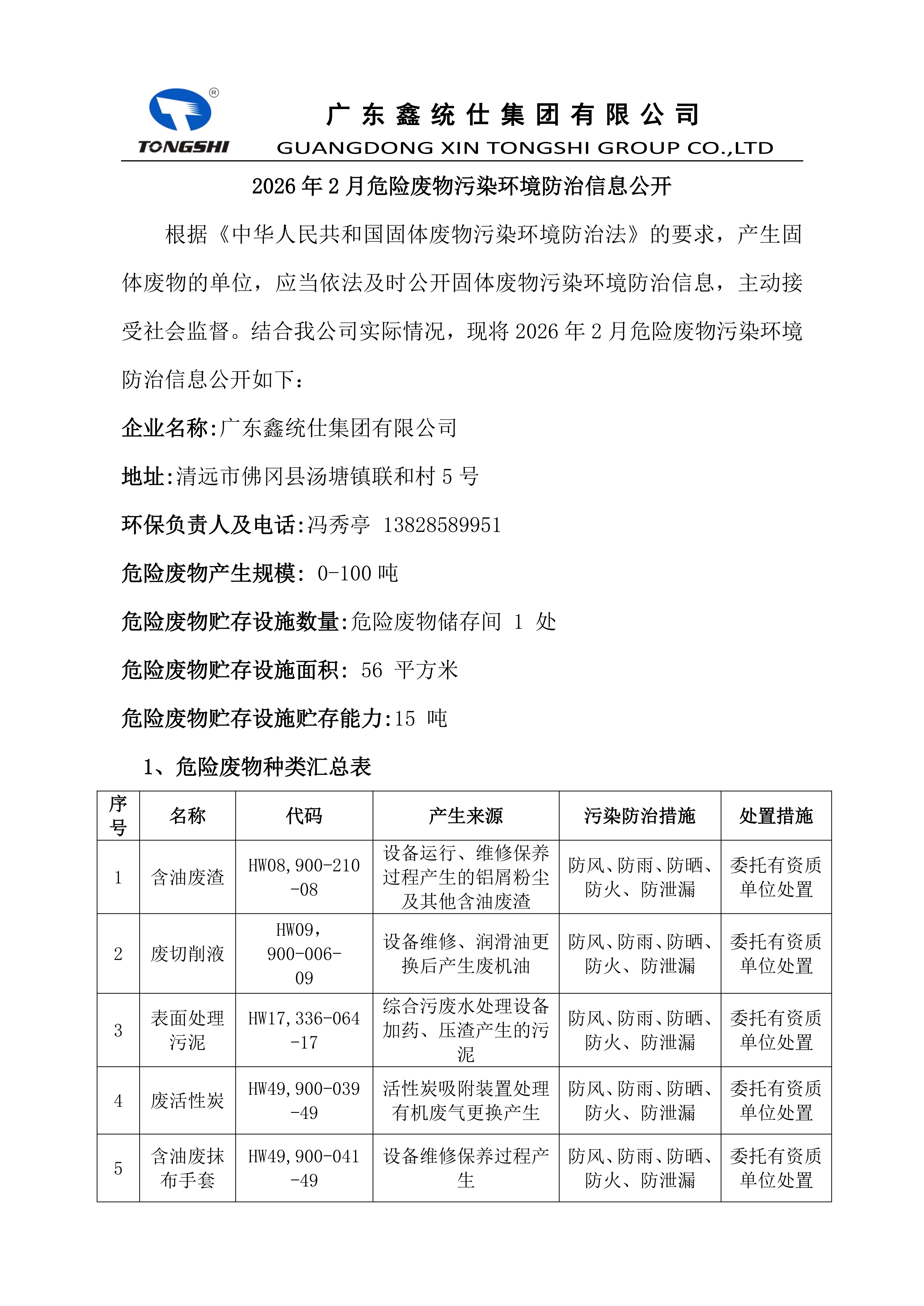 12月-广东鑫统仕危险废物污染环境防治信息公开