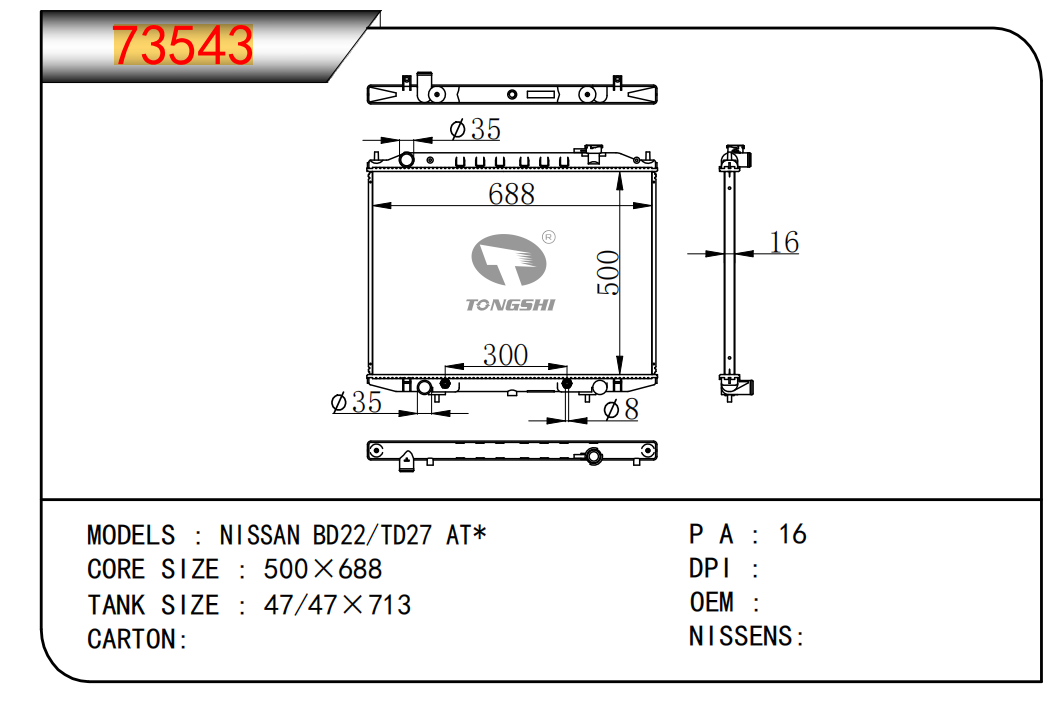 适用于沃尔沃V40 1.9TD D4192T 95- MT散热器