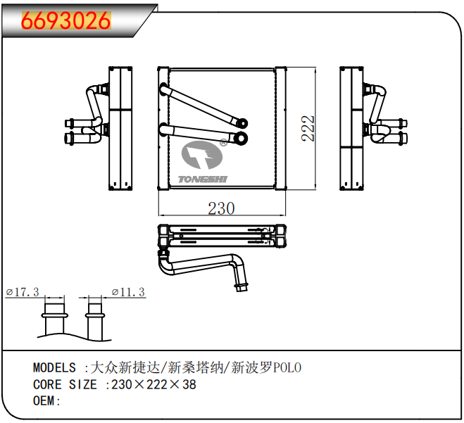 适用于沃尔沃V40 1.9TD D4192T 95- MT散热器