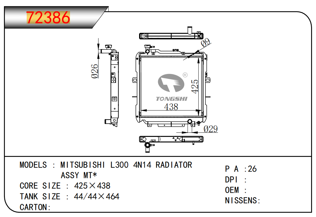 适用于FREIGHTLINER CASCADIA 125/ 113 L6 12.8L 12-13 AT散热器