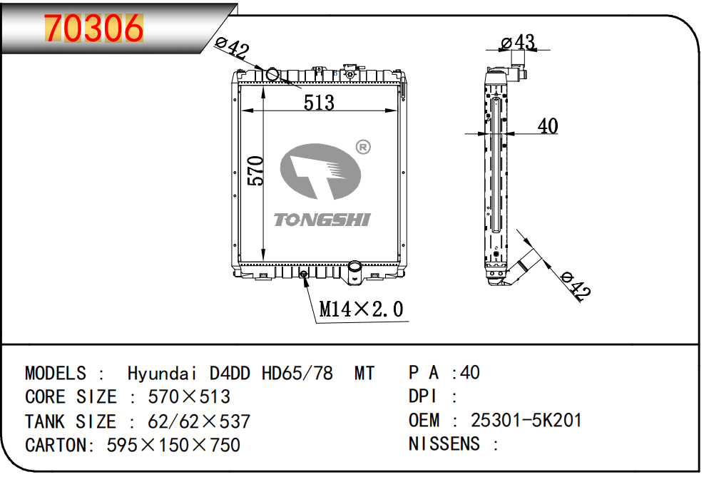 适用于沃尔沃V40 1.9TD D4192T 95- MT散热器