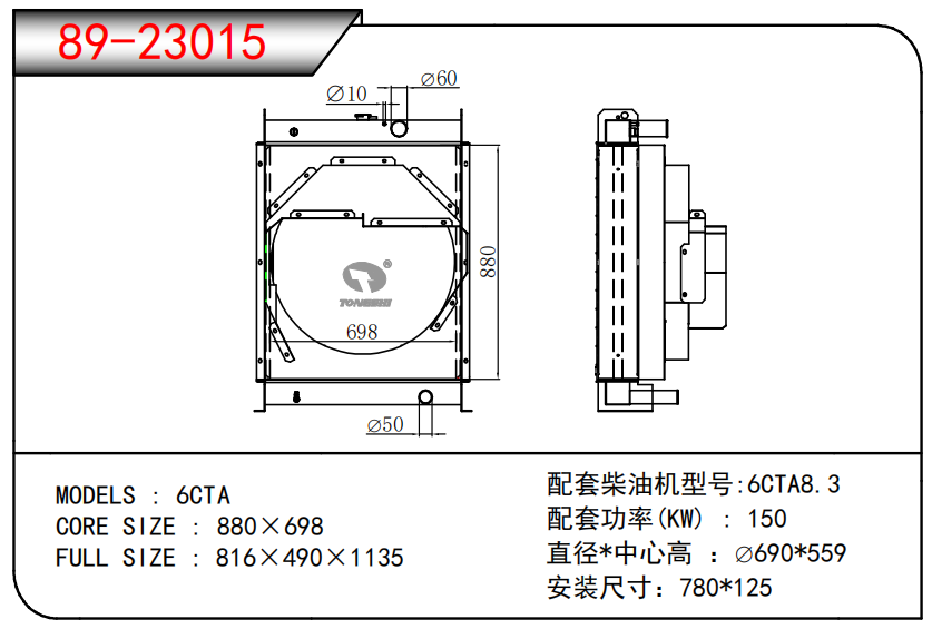 适用于FREIGHTLINER CASCADIA 125/ 113 L6 12.8L 12-13 AT散热器