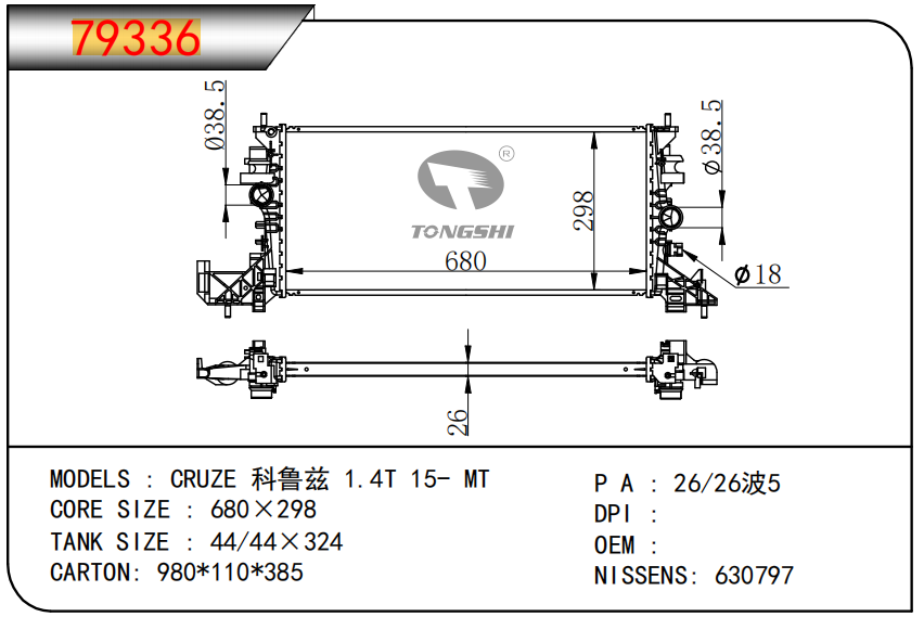 适用于沃尔沃V40 1.9TD D4192T 95- MT散热器