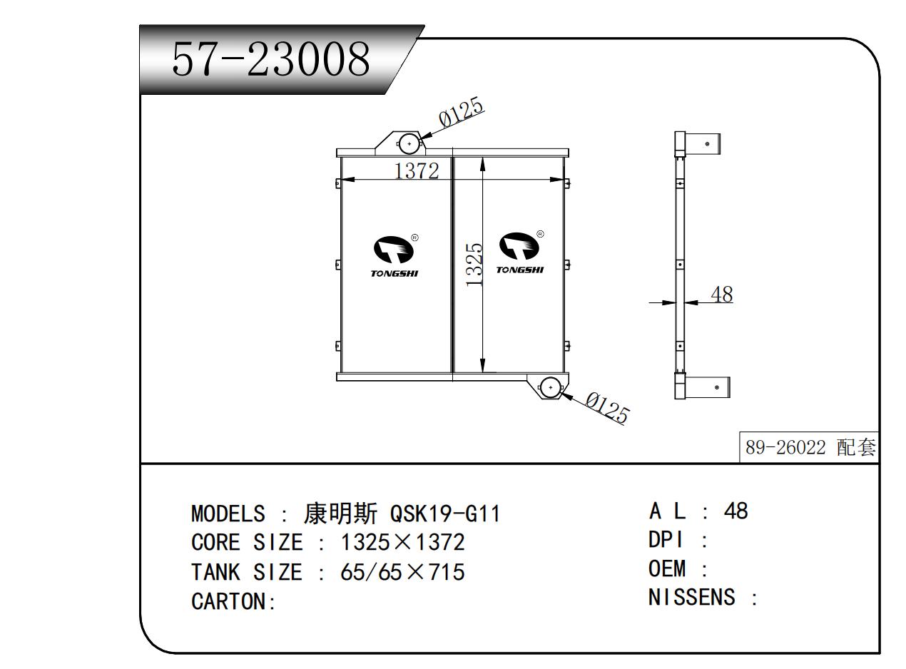 适用于FREIGHTLINER CASCADIA 125/ 113 L6 12.8L 12-13 AT散热器
