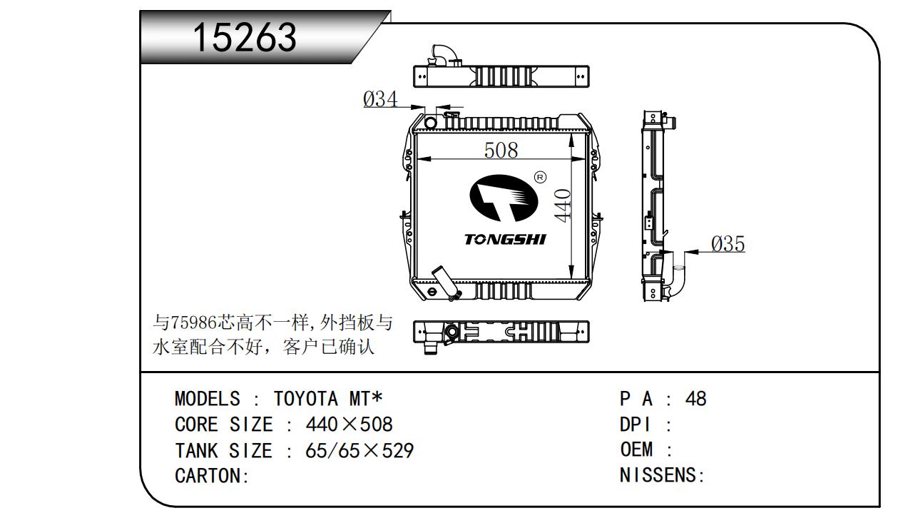 适用于FREIGHTLINER CASCADIA 125/ 113 L6 12.8L 12-13 AT散热器