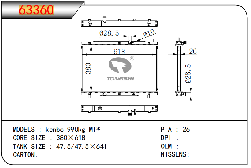 适用于沃尔沃V40 1.9TD D4192T 95- MT散热器