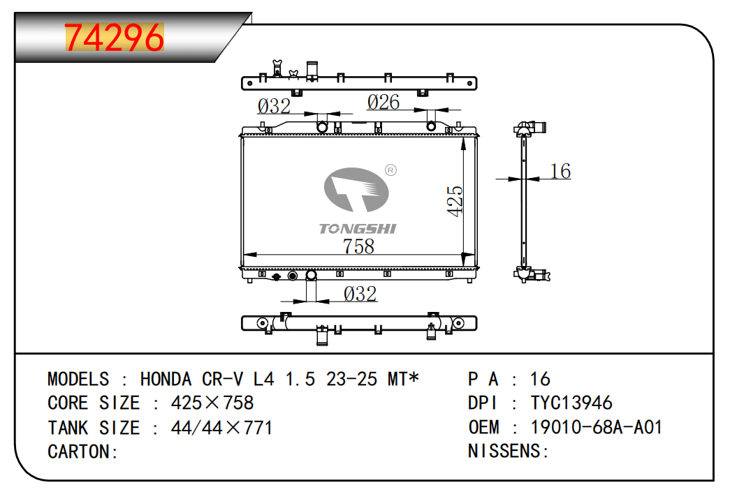 适用于奇瑞瑞虎(新款) MT散热器