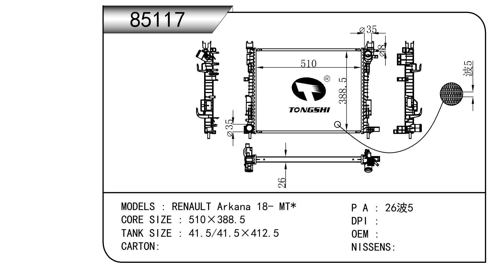 适用于FREIGHTLINER CASCADIA 125/ 113 L6 12.8L 12-13 AT散热器