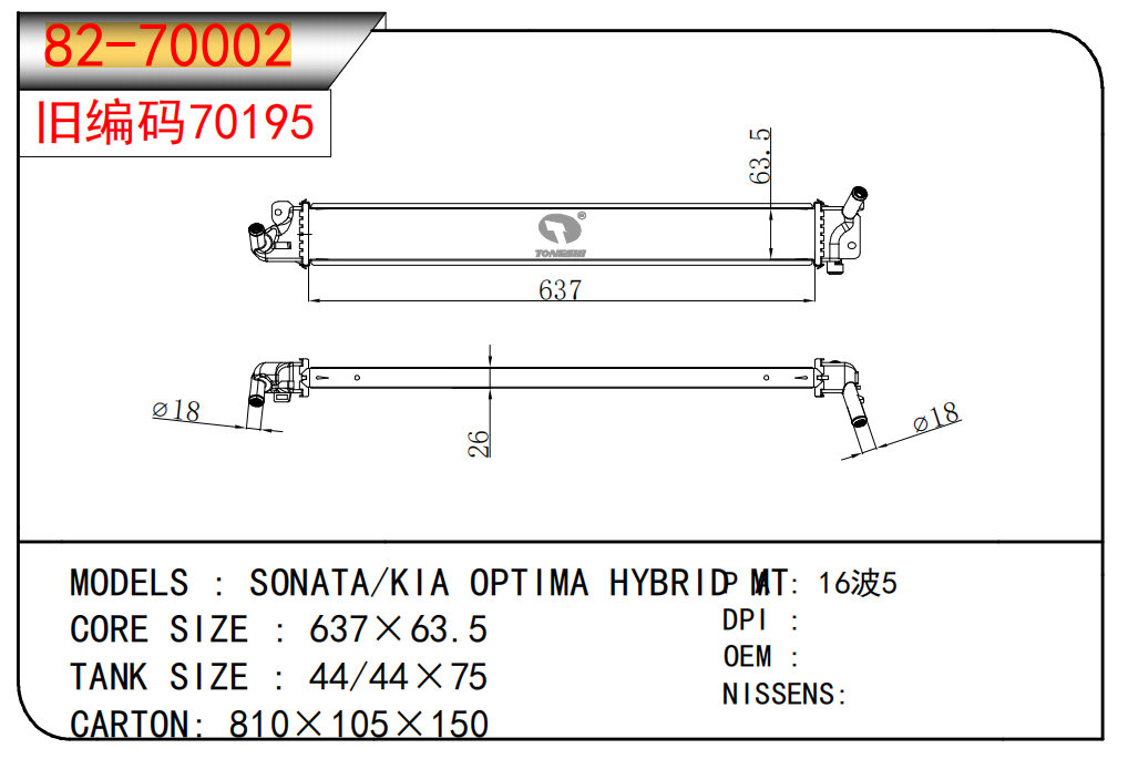 适用于沃尔沃V40 1.9TD D4192T 95- MT散热器