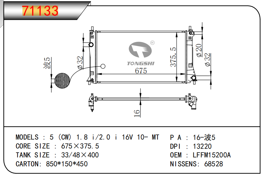 适用于沃尔沃V40 1.9TD D4192T 95- MT散热器