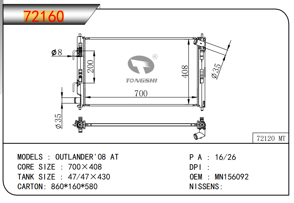 适用于沃尔沃V40 1.9TD D4192T 95- MT散热器