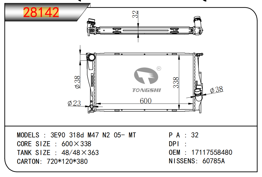 适用于宝马E30 320 i 82-93 AT散热器