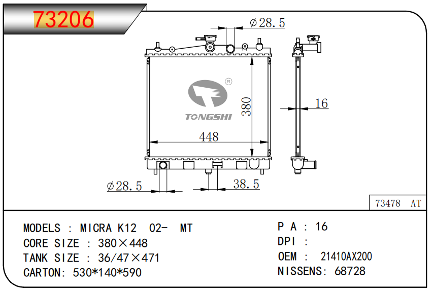 适用于宝马E30 320 i 82-93 AT散热器