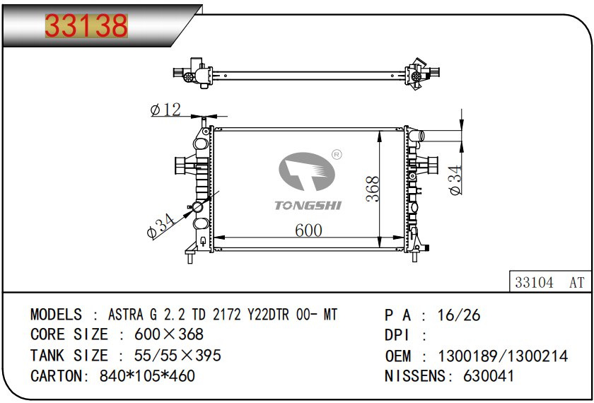 适用于沃尔沃V40 1.9TD D4192T 95- MT散热器