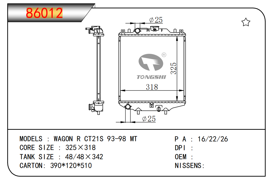 适用于宝马E30 320 i 82-93 AT散热器