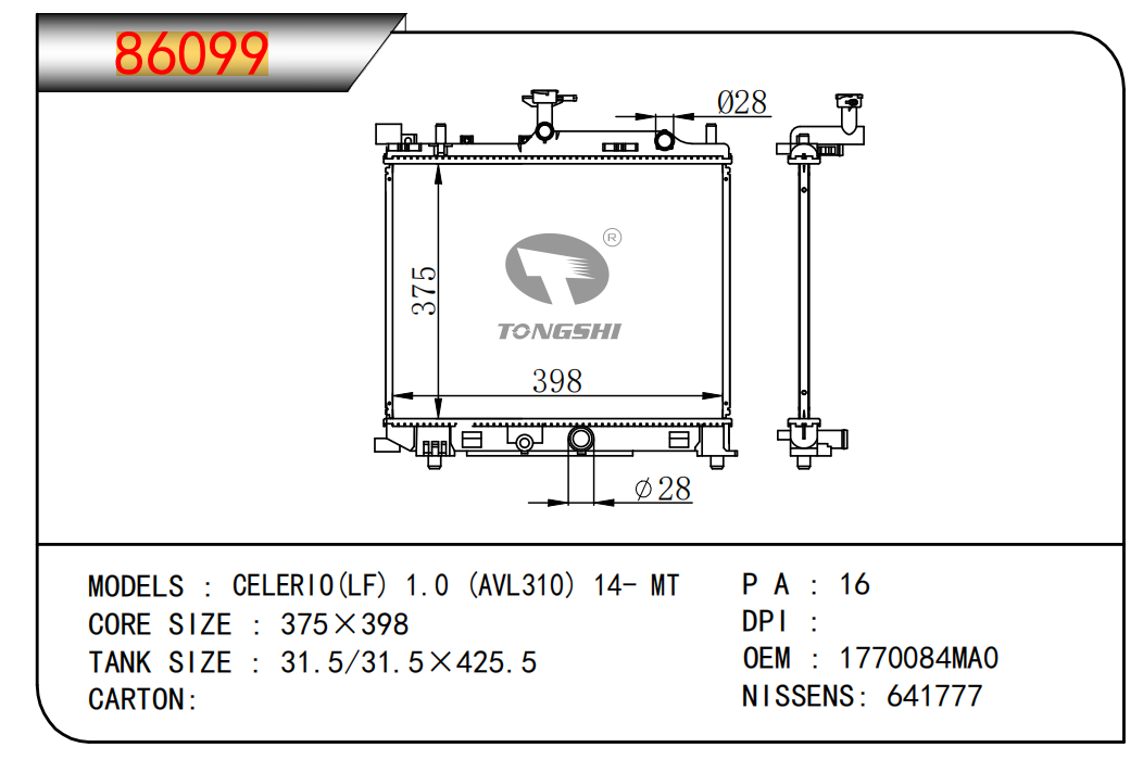 适用于沃尔沃V40 1.9TD D4192T 95- MT散热器
