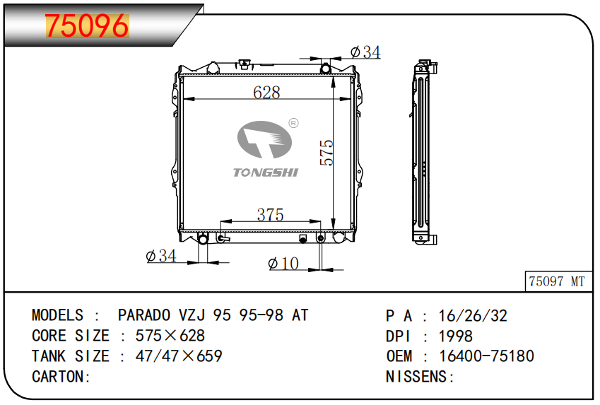 适用于沃尔沃V40 1.9TD D4192T 95- MT散热器