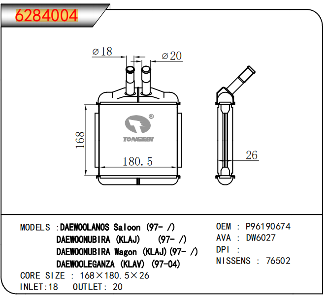 适用于大宇DAEWOOLANOS SALOON 97-/DAEWOONUBIRA (KLAJ) 97-/DAEWOONUBIRA WAGON (KLAJ) 97-/DAEWOOLEGNZA (KLAY) 97-04 暖风