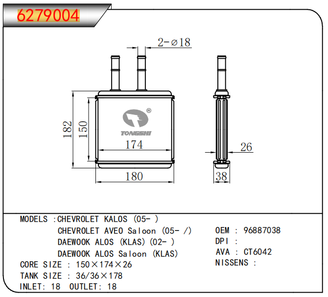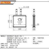 适用于雪佛兰KALOS (05- )/雪佛兰爱唯欧Saloon (05- /)/DAEWOOK ALOS (KLAS) (02- )暖风 OEM : 96887038