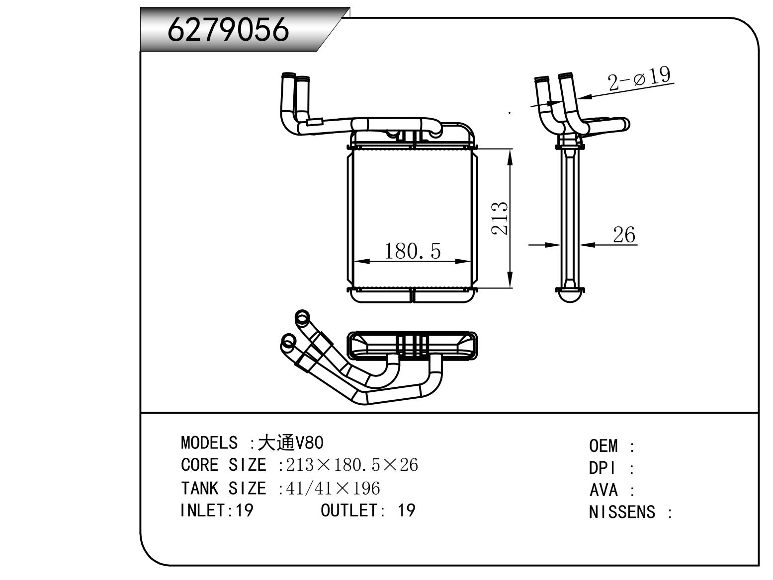 适用于沃尔沃V40 1.9TD D4192T 95- MT散热器