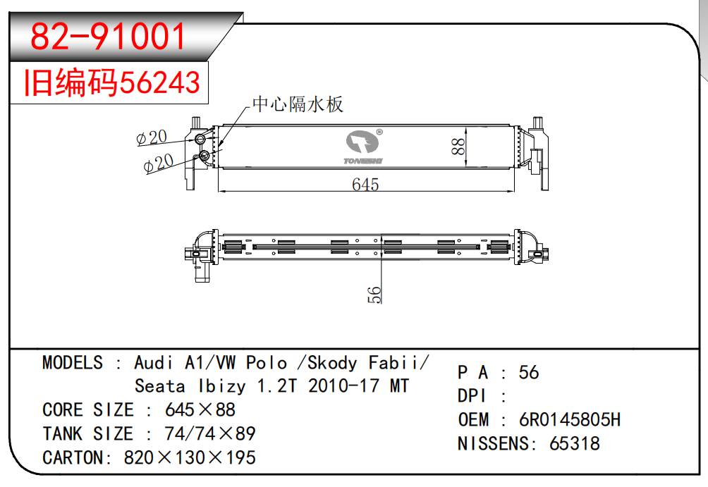 适用于宝马E30 320 i 82-93 AT散热器