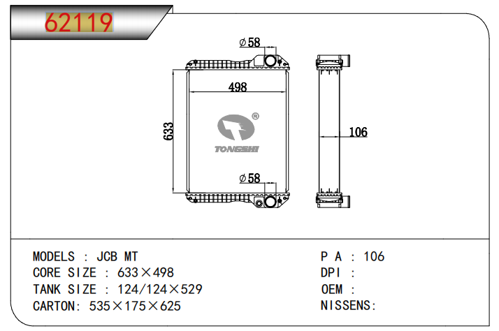 适用于沃尔沃V40 1.9TD D4192T 95- MT散热器