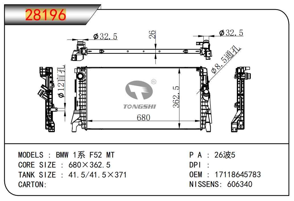 适用于宝马E30 320 i 82-93 AT散热器