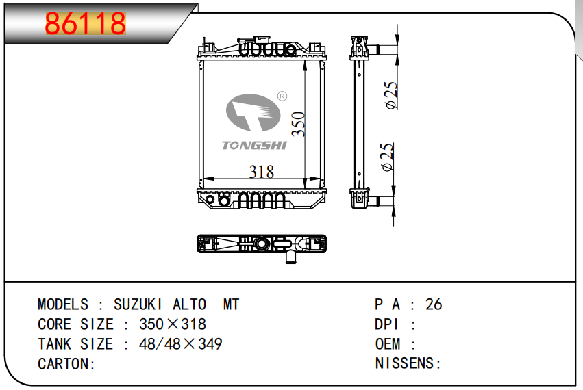 适用于沃尔沃V40 1.9TD D4192T 95- MT散热器